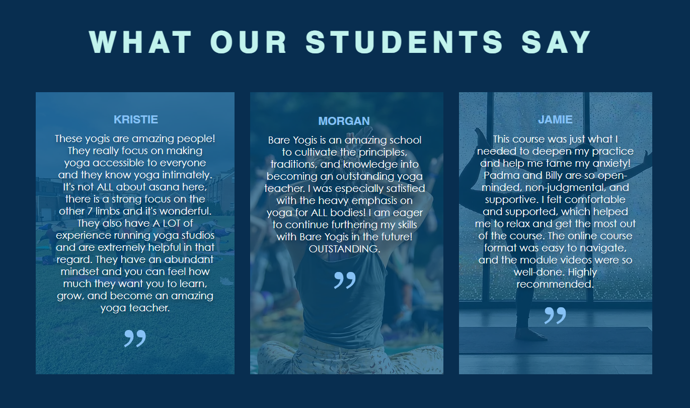 The Bare Yogis School of Yoga is led by Padma Dharmata, who has been teaching and training for 13+ years, and has certified over 200 yoga instructors, who are now teaching all over the world! We have led numerous small-group in-person teacher trainings, and are now instructing online, and continue to offer in-person private trainings! The goal of our trainings is not to just *get certified*, but our goal is to help unlock your greatest potential both in your life and as a yoga instructor! You will graduate, not just by hours and attendance alone, but also through competence, integrity, and harnessing your yoga as a way of life! This training has the capability of becoming a transformational experience for all involved.